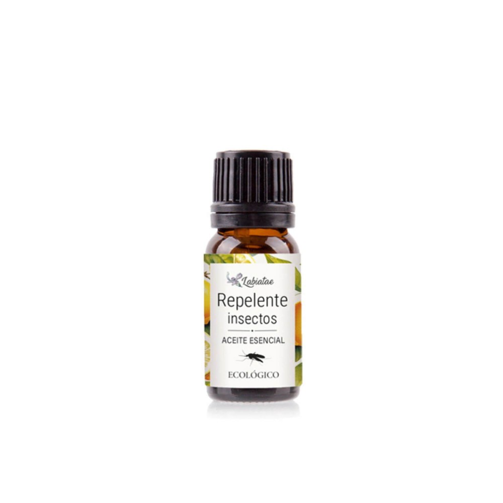 Aceite esencial ecológico "Repelente de insectos", de Labiatae. Aceites esenciales para mezclar con aceite vegetal de presión en frío (aceite de almendras, aceite de oliva, aceite de coco, etc.) para ahuyentar los insectos (moscas, garrapatas, pulgas, etc.) y prevenir las picaduras de mosquitos. Producto 100% natural y eficaz. Envase de cristal de 12 ml.