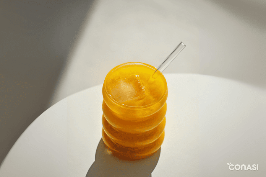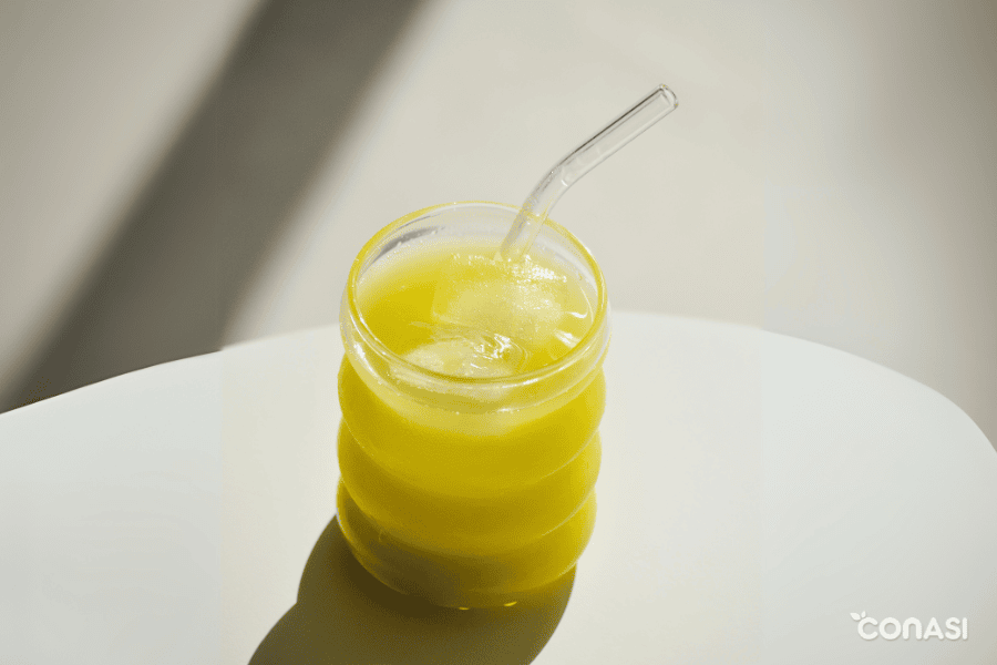 - Servir con una pajita de cristal o de acero inoxidable y un cubito de hielo si lo quieres más fresco.