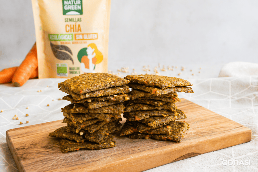 Receta de crackers de zanahoria, chía y hierbas aromáticas