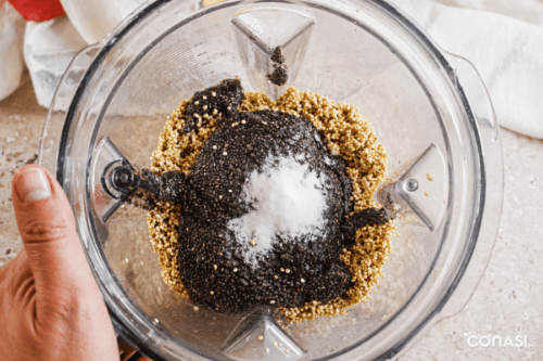 - En la jarra de la batidora Vitamix, introducir las semillas de chía y cerrar bien la tapa.