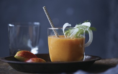 • Mientras asamos el boniato y las castañas, preparamos el zumo de 5 manzanas en nuestro extractor de zumos.