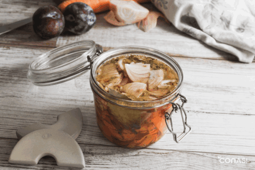 - Una vez la verdura esté a nuestro gusto y queramos pausar la fermentación, llevar a la nevera e ir consumiendo durante las próximas semanas.