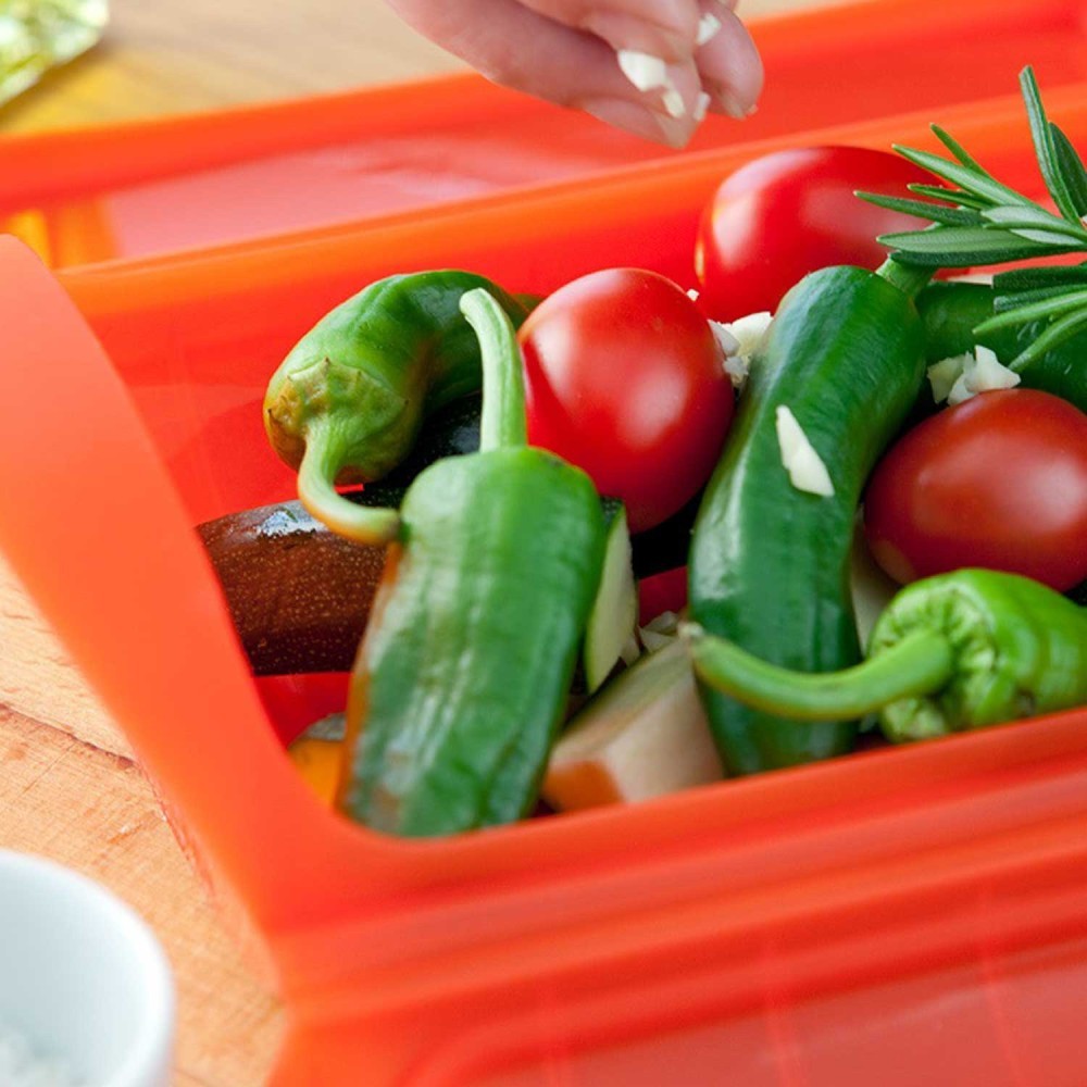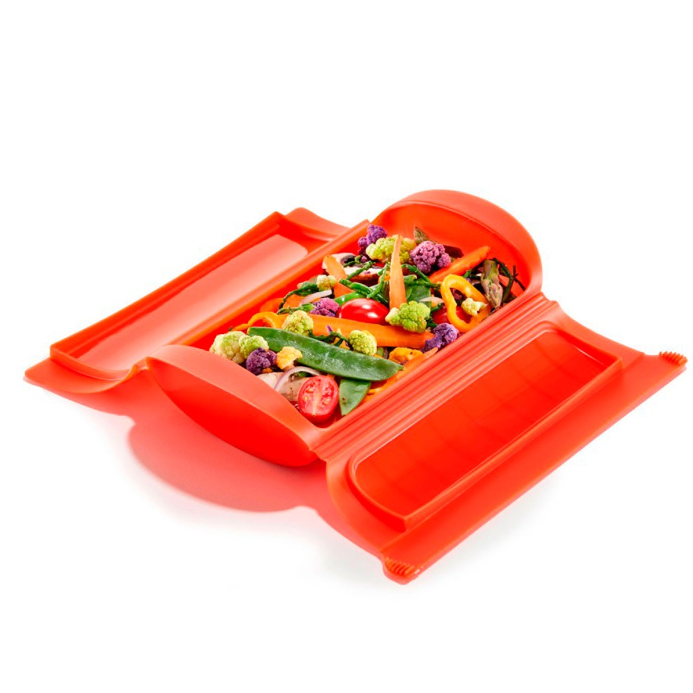 Estuche de vapor para microondas de silicona platino 100%. Ideal para cocinar de forma rápida y sabrosa sin aceite. Para 3-4 personas.