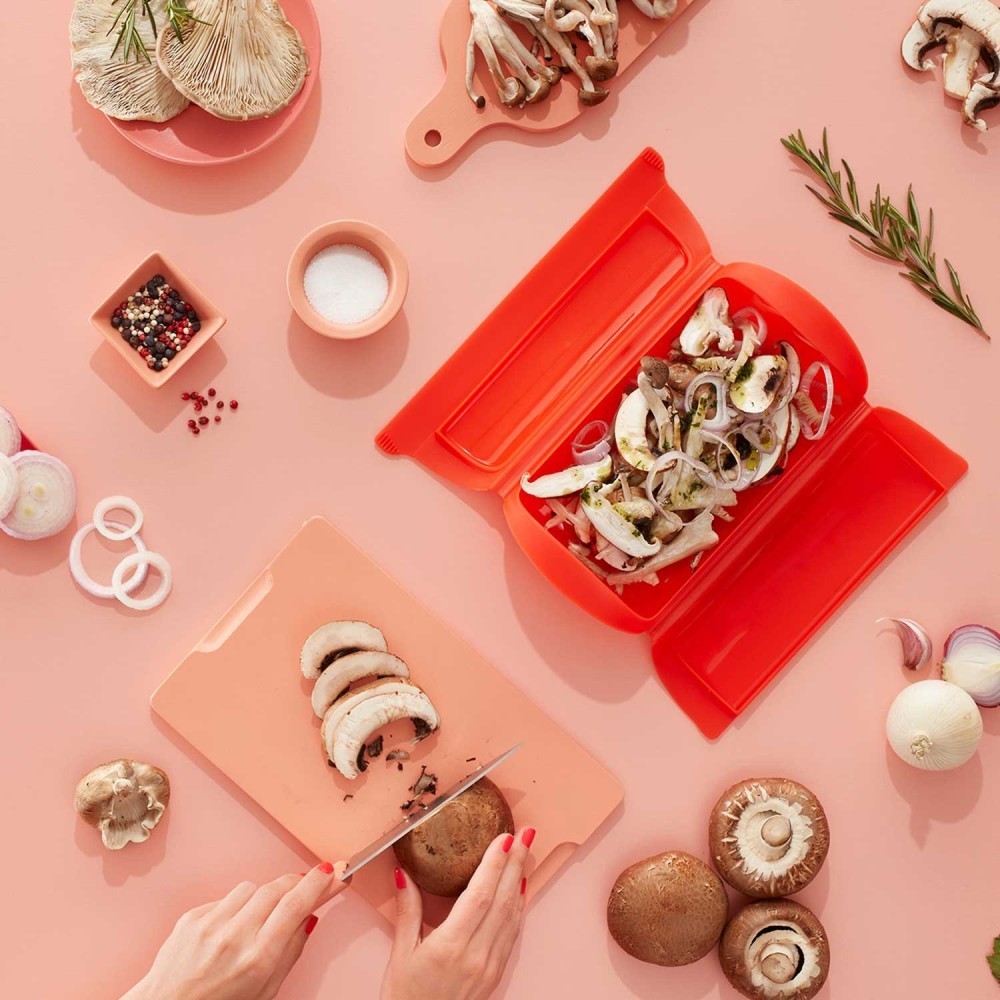 Descripción de Estuche de vapor de silicona platino, grande, con bandeja - Lekue