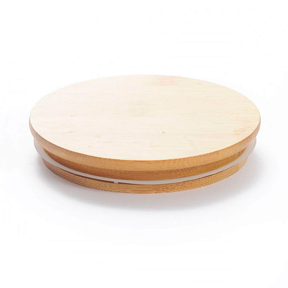 Vaso de cristal con tapa de bambú, by Chufamix. Para conservar las leches vegetales en la nevera o para almacenamiento de alimentos.
