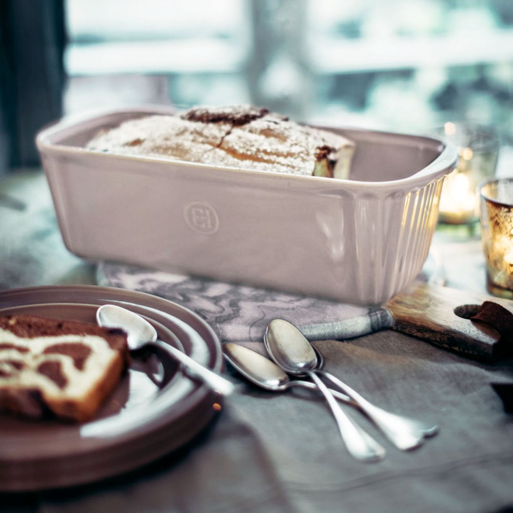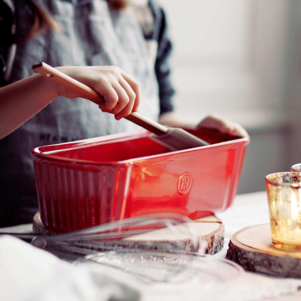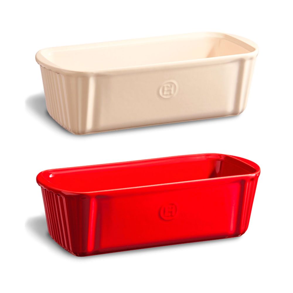 Molde rectangular de cerámica refractaria, de Emile Henry. Perfecto para hornear bizcochos, brioches, pan de jengibre etc., que requieran coger altura sin que se resequen los bordes debido a la coción homogénea de la cerámica. De material seguro libre de tóxicos. Disponible en dos colores: beige y rojo.