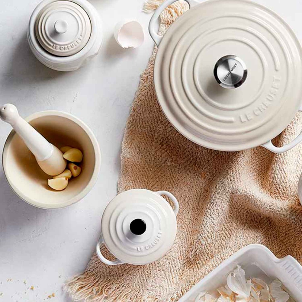 También disponible otros productos de Le Creuset: molinillos, cocottes, cazuelas, skillet, parrillas de distintos tamaños. El menaje de pequeño tamaño se puede utilizar para almacenar o servir ingredientes.