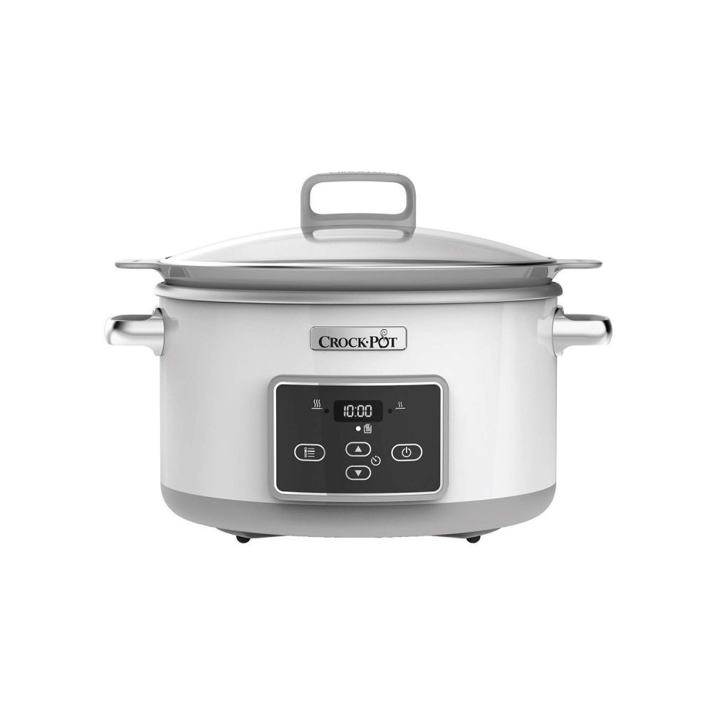 Crock Pot de 5 litros, con temporizador. Ideal para cocinar 6 raciones con un recubrimiento cerámico totalmente libre de tóxicos.