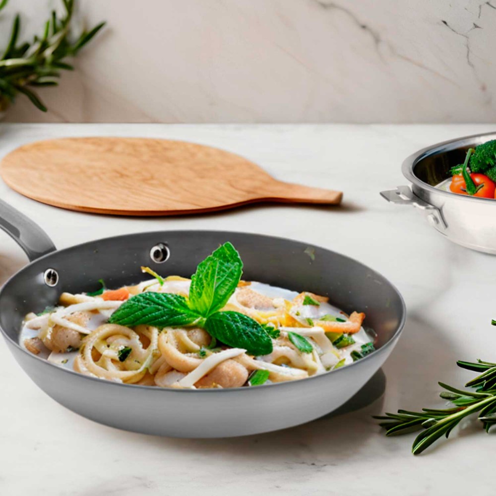 Este tipo de sartén también se puede conocer como sartén de hierro, sartén de hierro mineral o carbon steel.