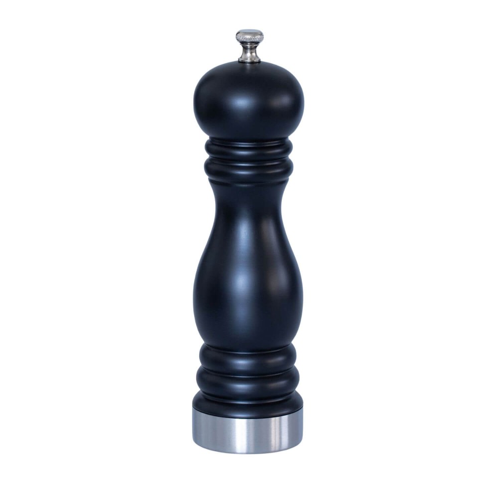 Molinillo negro mate con diseño elegante para moler especias y sal directamente en el plato. De 20 cm de diámetro.